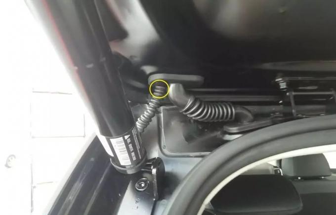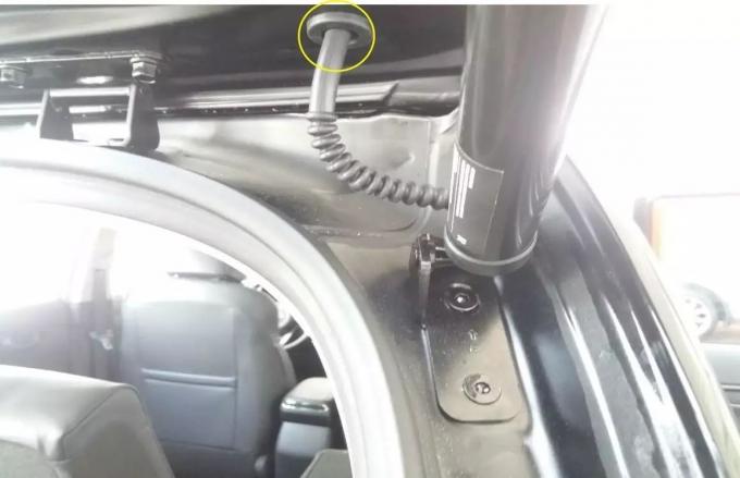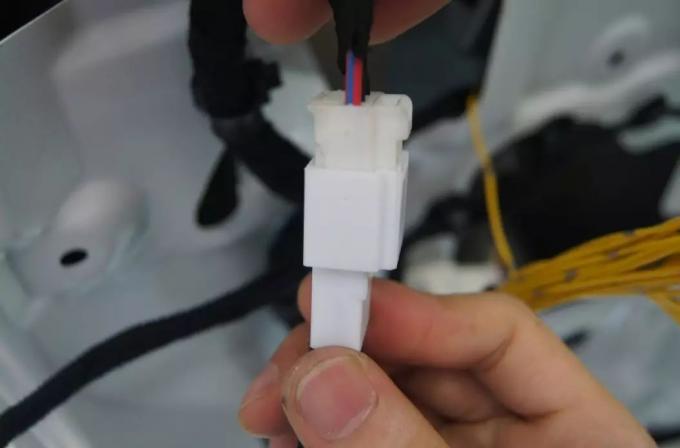 6. على اليسار ، قم بتثقيب القابس المطاطي للسيارة الأصلية من خلال خط Holzer الخاص بالقطب الكهربائي (كما تظهر الصورة)