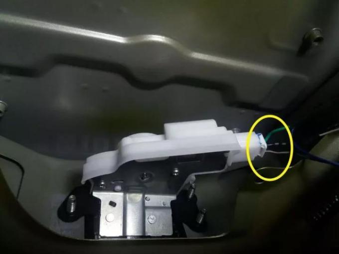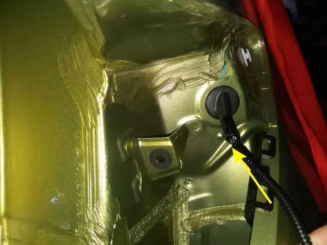 13. يتم توجيه كابل الطاقة وكابل التحكم المركزي من خلال المكونات المطاطية للماء السيارة الأصلية إلى الباب الخلفي.