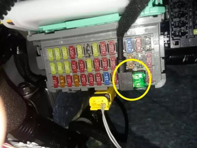 8. تحت محرك الأقراص الرئيسي ، وإزالة اللوحة ، والعثور على السلطة ، افصل فتيل 20A السيارة الأصلي ، سد العجز في قابسنا الطاقة.