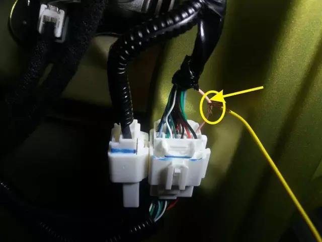12. قم بتوصيل مقبس السيارة الأصلي ، خط التحكم الأصفر للشركة لربط الخط الأبيض (الصف الأول من الثقب الثاني من اليمين إلى اليسار).