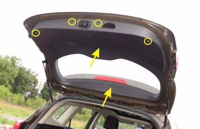 .1 ﻗم أوﻻً ﺑﺈزاﻟﺔ اﻟﻣﺳﺎﻣﯾر واﻟﻣرﺑﻊ اﻟﻣوﺟود ﻓﻲ ﻟوﺣﺔ ﺗﻐطﯾﺔ اﻟﺑﺎب اﻟﺧﻟﻔﻲ ﻗﺑل إزاﻟﺔ اﻟﻐطﺎء اﻷﺳود.