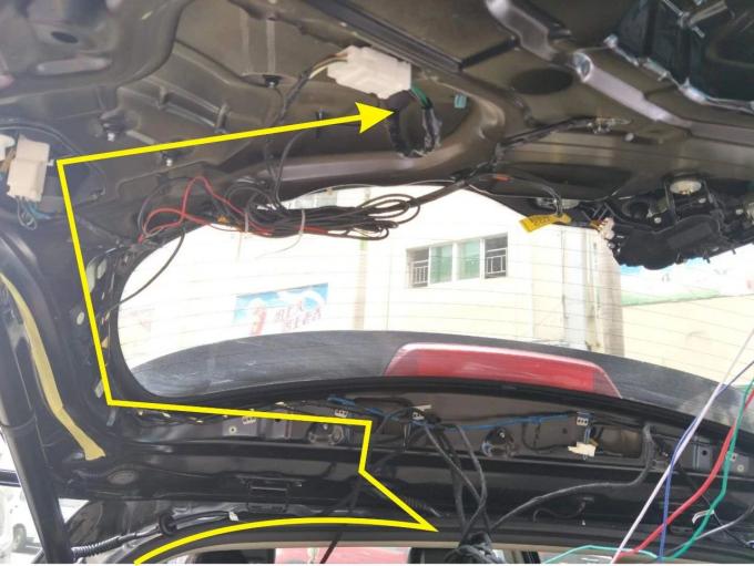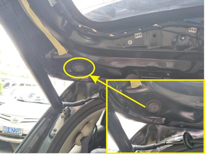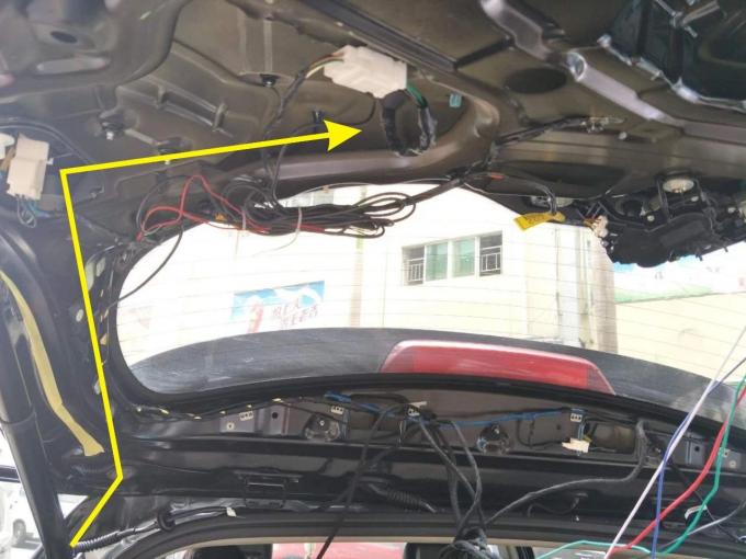7. أخرج القابس للماء للسيارة الأصلية ، يمر خط الانبثاق من خلال فتحة سد المطاط إلى لوحة غطاء الباب الذيل.