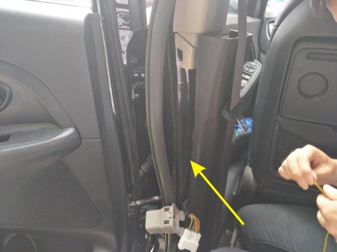 12. قم بفك لوحة القطع في العمود B لحزام مقعد القيادة الرئيسي ، وابحث عن التحكم في السيارة الأصلية.