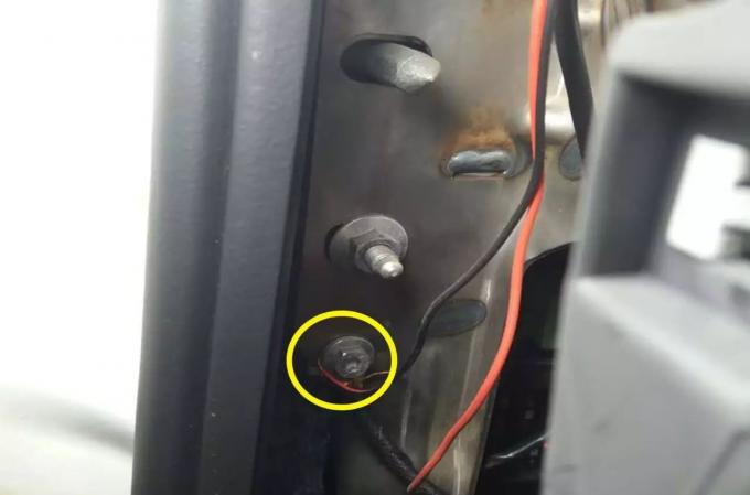 2. قم بتركيب القطب المناسب مع الجزء السفلي الأيمن من السيارة الأصلية والغسالة.